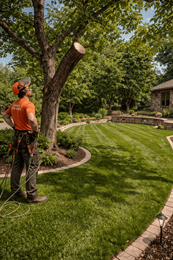 We remove lower branches to raise the canopy, improving sight lines, reducing fire ladder fuel, and allowing better air circulation beneath mature trees.